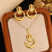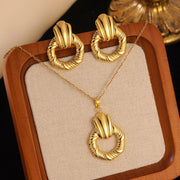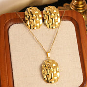 Set 1# Stainless Steel Flower Necklace Earring Set