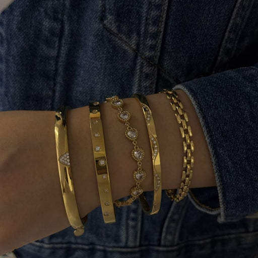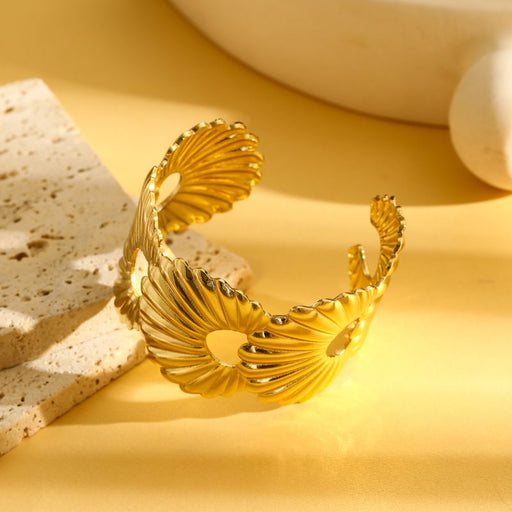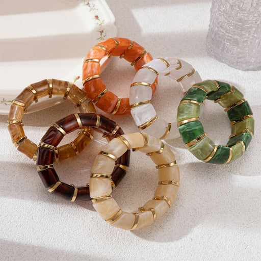 Bracelet-gold-brown Stainless Steel Chain And Fabric Leopard Print Wrap Open Bracelet