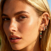 Gold Set Copper And Diamond-encrusted Round Earring Set