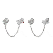 Gold Set Gold-plated Copper And Diamond-encrusted Heart Earring Set