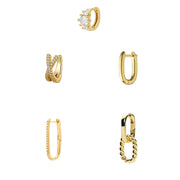 Gold Set Gold-plated Copper And Diamond-encrusted Irregular Earring Set