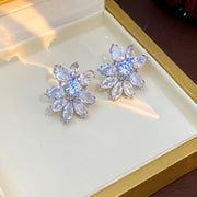 Silver (thickened With Real Gold Plating) Copper And Diamond-encrusted Flower Earrings