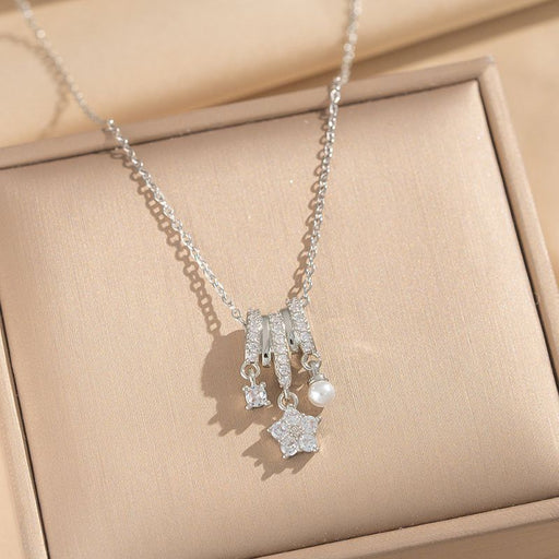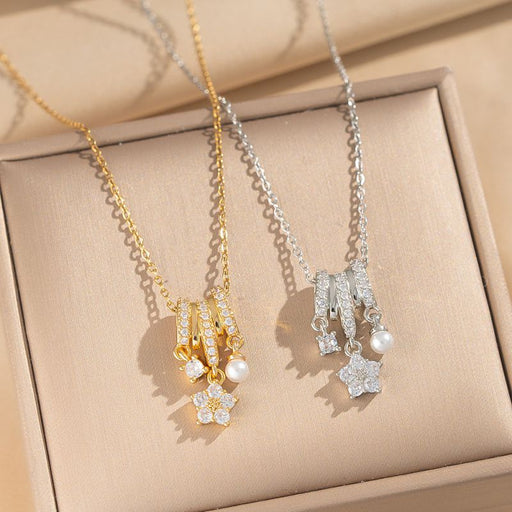 Gold Bow Circle Heart Necklace Copper And Diamond-encrusted Heart-shaped Bow Necklace