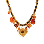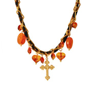 Gold 1 Titanium Steel Heart Tassel Chain Fabric Necklace