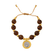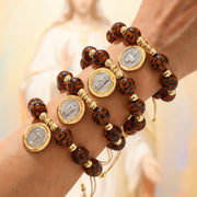 Gold 1 Circular Religious Series Beaded Leopard Print Braided Bracelet