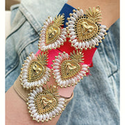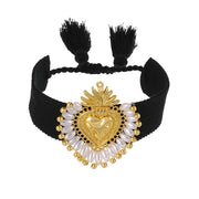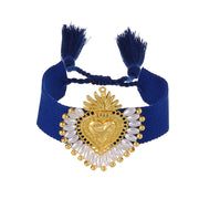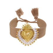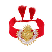 Red Copper Heart Beaded Pearl Braided Tassel Bracelet