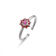 White Gold Red Dripping Oil Red Diamond Spider Web Ring Copper Diamond Heart-shaped Oil-dripping Spider Web Ring