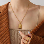 Gold Letter A Necklace 50cm Titanium Steel 26 Letter Square Necklace