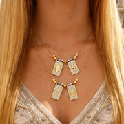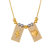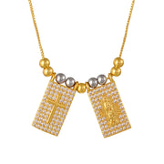Gold 1 Copper-set Zircon Square Cross Portrait Beaded Necklace