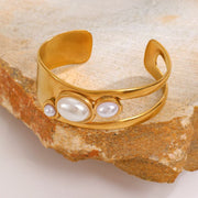 Gold Stainless Steel Tiger Eye Irregular Bracelet