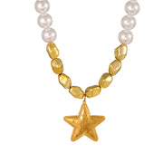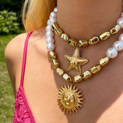 Gold 1 Titanium Steel Sun Face Imitation Pearl Necklace