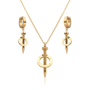 Gold Stainless Steel Nail Necklace And Earring Set