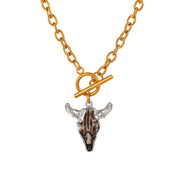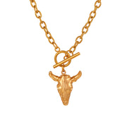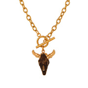 Gold 1 Titanium Steel Bull Head Series Ring Buckle Necklace