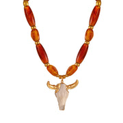 Gold Bull Head Resin Titanium Steel Beaded Necklace
