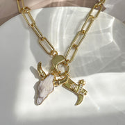 Gold Copper Inlaid Zircon Boots Bull Head Lobster Clasp Thick Chain Necklace