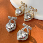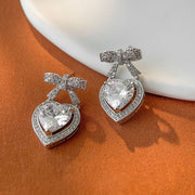 Silver Copper And Diamond-encrusted Heart And Bow Earrings