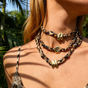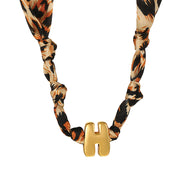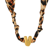 B Copper 26 Letter Fabric Leopard Print Knot Necklace