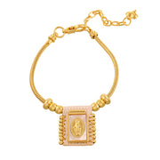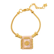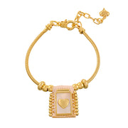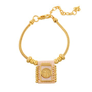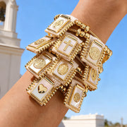 Gold 5 Woven Square Seashell Portrait Beaded Bracelet