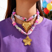 Color 1 Titanium Steel Heart-print Fabric Necklace