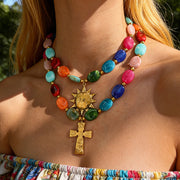 Pink Titanium Steel Heart-shaped Resin Beaded Necklace