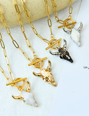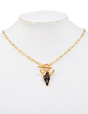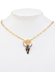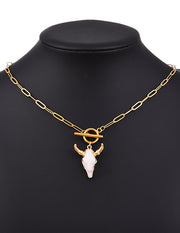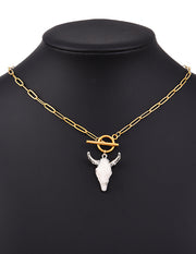 Fashion Gold+silver Titanium Steel Shell Bull Head Ot Buckle Necklace
