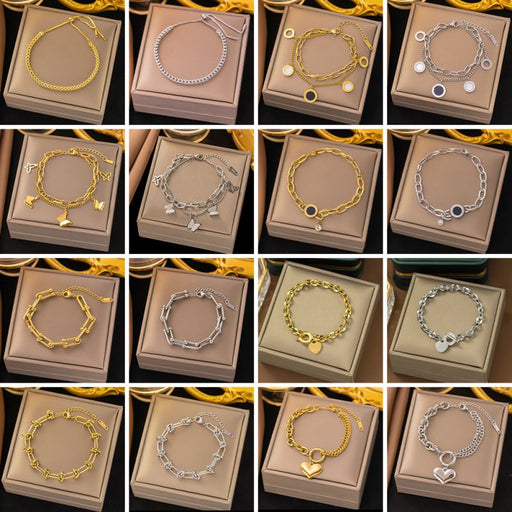 Double Heart Bracelet Gold Titanium Steel Double Heart Bracelet