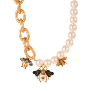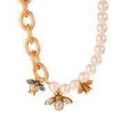 Gold 1 Alloy Diamond Bee Pearl Chain Necklace