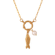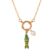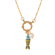Blue Titanium Steel Oil Drop Small Fish Pearl Ring Buckle Necklace (8mm)
