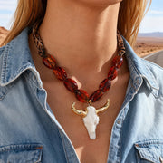 Brown Bullhead Resin Beaded Leopard Print Mesh Necklace