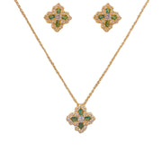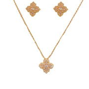 Gold-plated Zircon Four-leaf Clover Set (thickened Real Gold Plating) Copper And Diamond-encrusted Four-leaf Clover Necklace And Earring Set