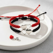 1 Pair Of Double Heart Knot Hand Ropes Black And Red Double Heart Stainless Steel Cord Braided Bracelet