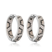 1 Pair Of Gold Champagne Diamond Leopard Print Round Earrings Copper And Diamond Leopard Print Round Earrings