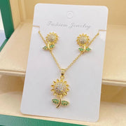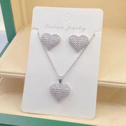 B Copper Diamond Heart Necklace And Earring Set