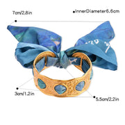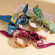 Bracelet-gold-red Stainless Steel Pleated Round Scarf Wrap Open Bracelet