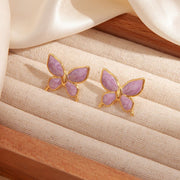Butterfly Earrings-purple Stainless Steel Oil-dripping Butterfly Earrings