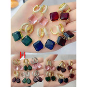 C Brass And Diamond-encrusted Square Hoop Earrings
