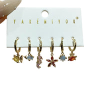 Color Copper And Zircon Ocean Series Pearl Earrings 6-piece Set
