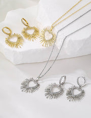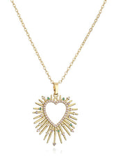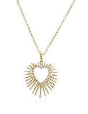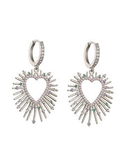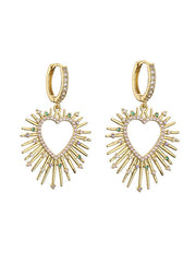Fashion 1 Pair Of Golden White Diamond Earrings Brass Inset Zirconium Spiked Heart Earrings
