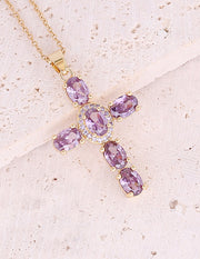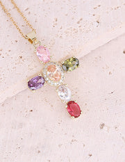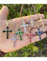 Fashion 7#white Bronze Zirconium Cross Necklace