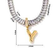 Fashion A Copper Gold-plated Rectangular Zirconium 26 Letter Necklace