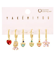 Fashion Color Copper Inlaid Zircon Love Girl Flower Stud Earrings Set Of 6