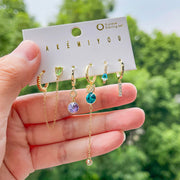 Fashion Color Copper Inlaid Zircon Swan Pendant Chain Earrings Set Of 6