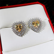 Fashion Colorful Brass And Diamond Heart Stud Earrings