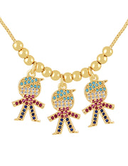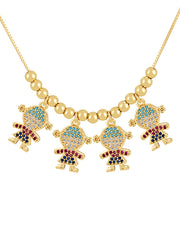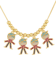 Fashion Gold 6 Copper Inlaid Vermiculite Boy And Girl Pendant Beading Necklace (4)