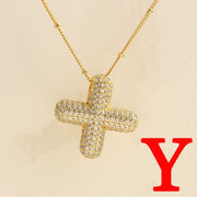 Fashion Gold Balloon Letter A With Zirconium Copper Diamond Letter Necklace