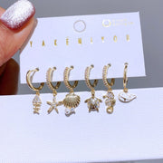 Fashion Gold Copper Inlaid Zirconium Shell Starfish Earring Set
