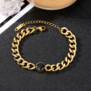 Fashion Gold Stainless Steel Chain Black Diamond Bracelet