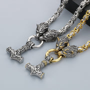 Fashion Gold Titanium Steel Geometric Wolf Head Hammer Men's Necklace