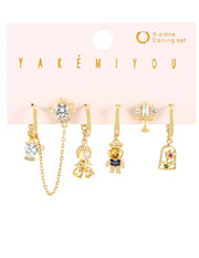 Fashion Gold Zirconia Geometric Kettle Candlestick Earring Set In Copper