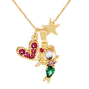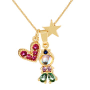 Fashion Golden 1 Copper Paved Zirconia Heart Princess Pendant Necklace